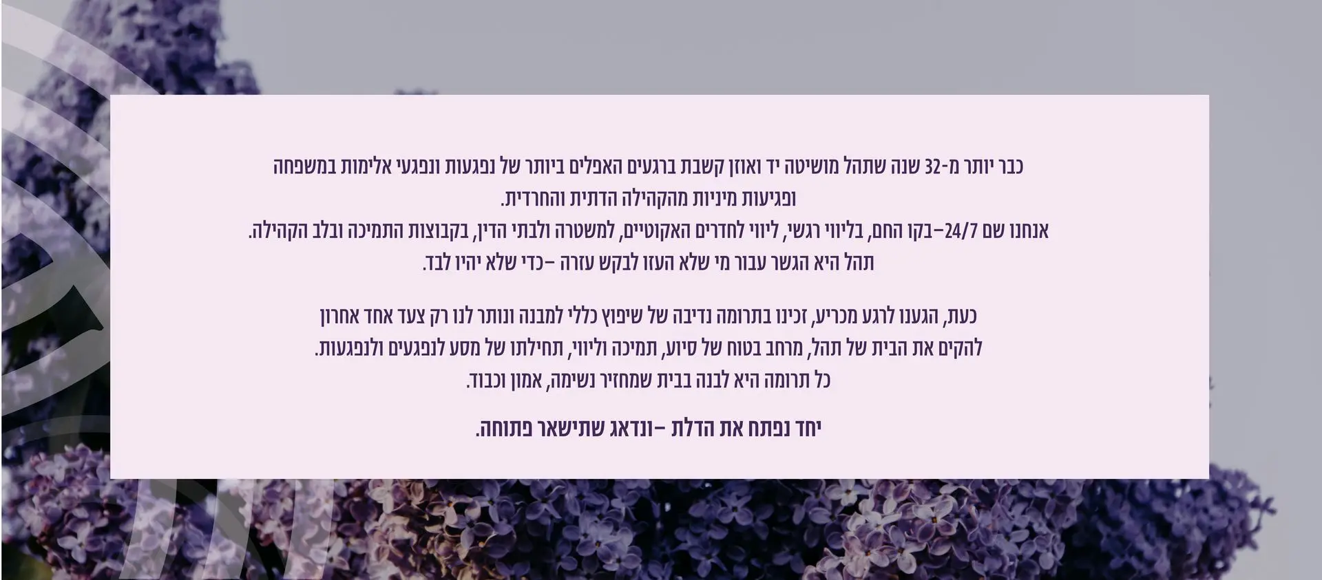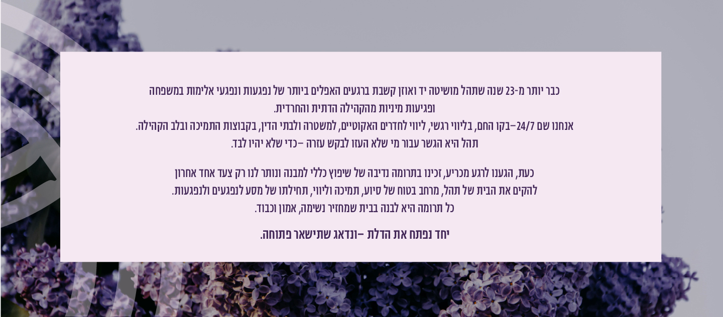 תרומה לליווי ותמיכה קבועה של נפגעת