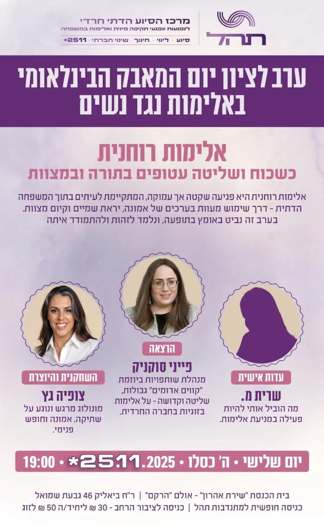 הרשמה ל ערב לציון המאבק הבינלאומי באלימות נגד נשים -- אלימות רוחנית
